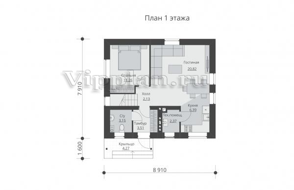 | Размеры дома: | 8.91м×7.91м |