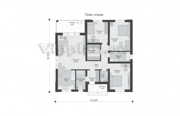 | Размеры дома: | 12.87м×12.07м |