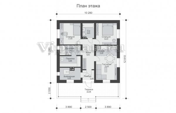| Размеры дома: | 10.28м×12.81м |